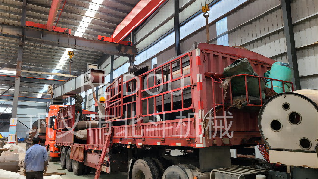大型連續式炭化設備一般需要三到四輛掛車才可將設備主機及所有配件裝車完畢,即使如此,車間師傅們也依然做到分毫不差的將所有產品穩重有序的裝車發向客戶現場。